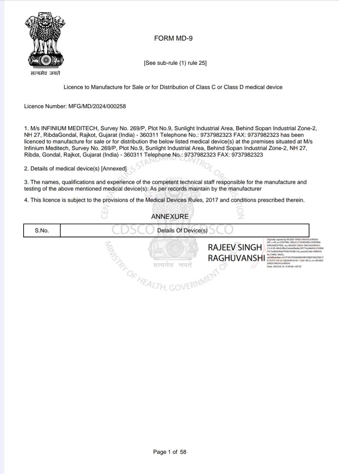 FDA Licence